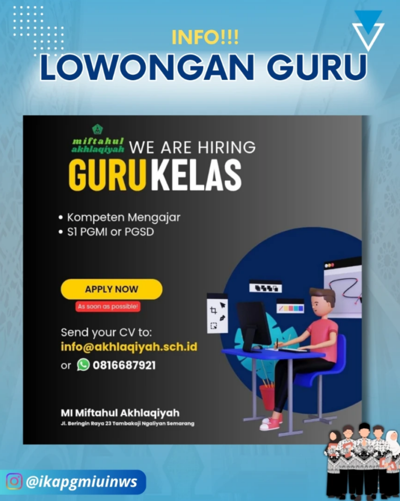 Madrasah Ibtidaiyah MIftahul Akhlaqiyah membuka lowongan pekerjaan bagi lulusan PGMI.