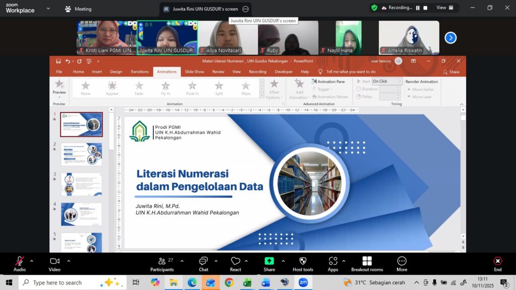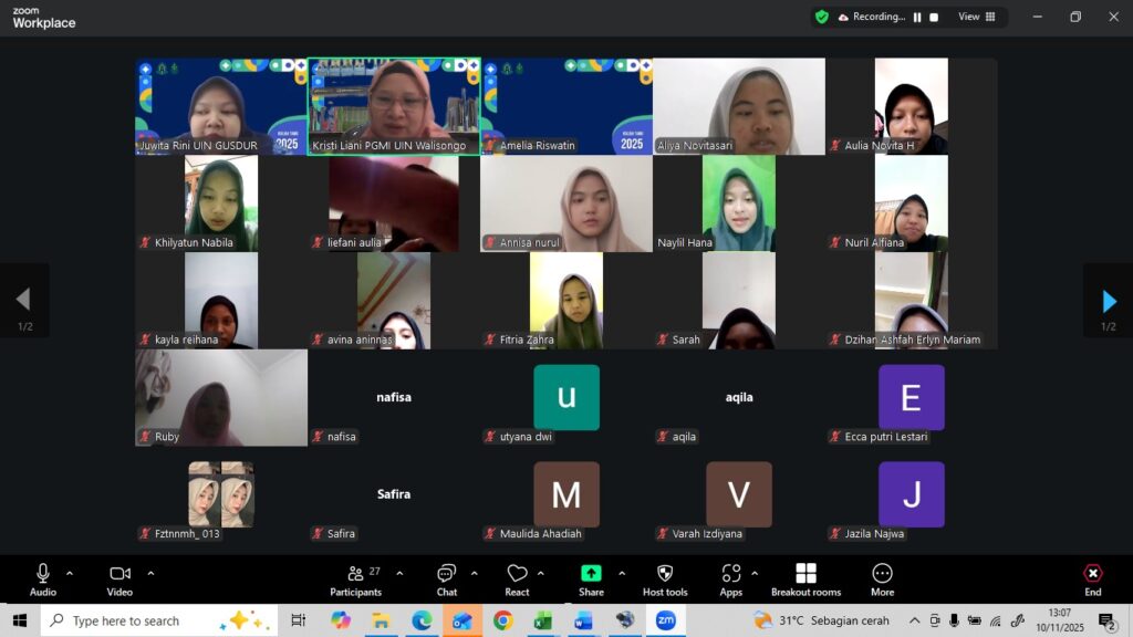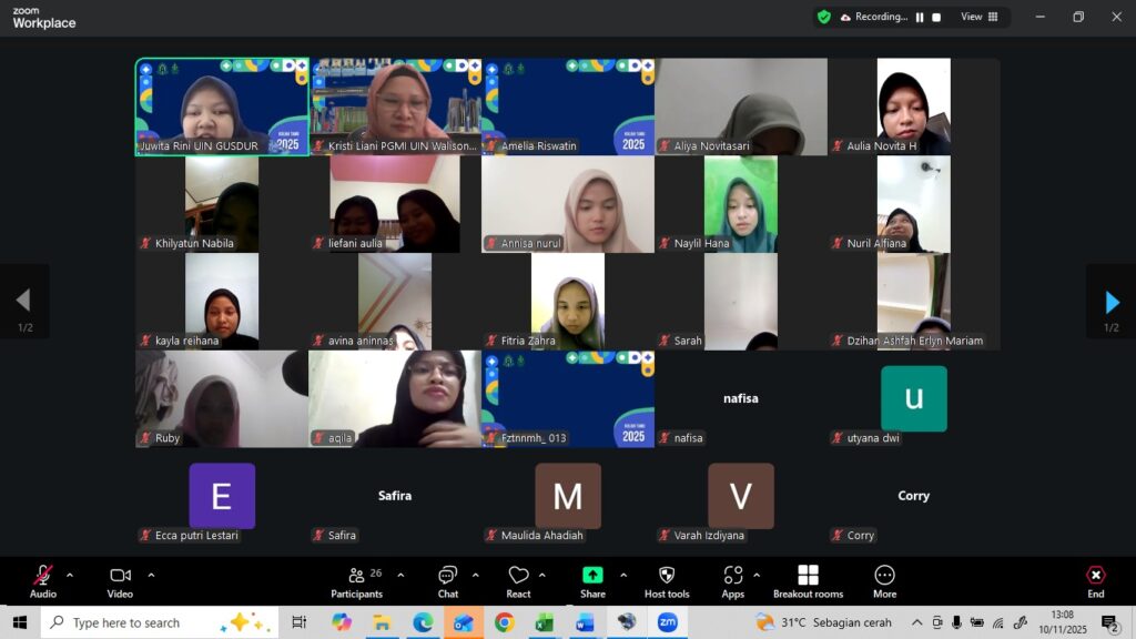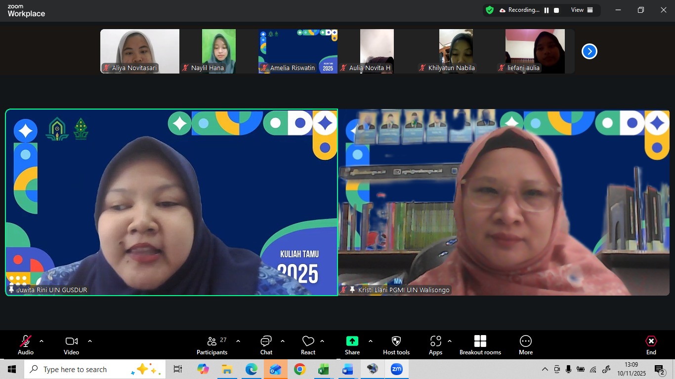 Program Studi Pendidikan Guru Madrasah Ibtidaiyah (PGMI) UIN Walisongo Semarang menunjukkan komitmennya dalam meningkatkan kompetensi literasi numerasi mahasiswa melalui penyelenggaraan kuliah tamu. Kegiatan ini dilaksanakan melalui platform Zoom meeting pada hari Senin, 10 November 2025.